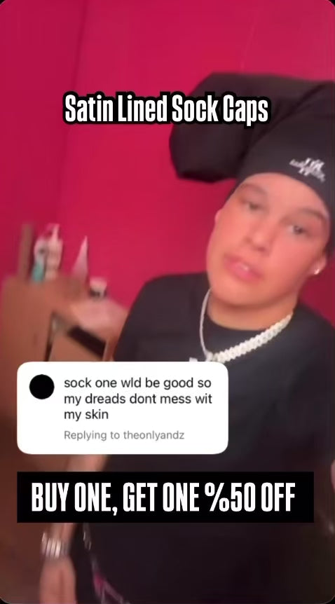 Introducing our premium Satin-Lined Extended Loc Cap – the ultimate solution for maintaining healthy, beautiful hair while you sleep or lounge. Crafted with the finest satin fabric, this sock cap provides a gentle and protective barrier against friction, preserving your hair's natural moisture and shine. Say goodbye to frizz, breakage, and tangles as you indulge in luxurious comfort and effortless style. Our satin-lined extended cap ensures every loc is treated with care. Elevate your nighttime routine and awaken to hair that looks and feels revitalized, thanks to our meticulously designed hair cap.